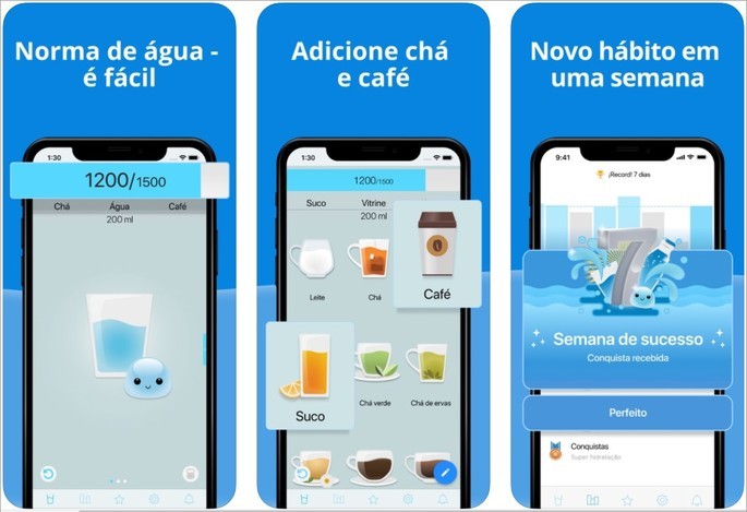 É só procurar por ”beber água” na sua loja de aplicativos e escolher o que melhor combina com você.